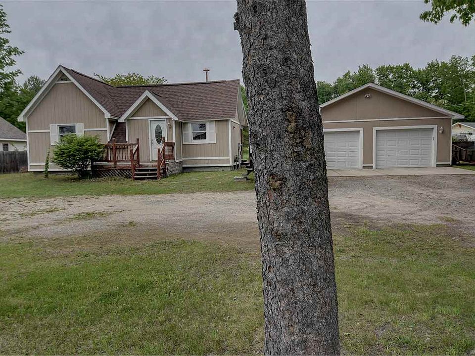Attractive home in a great location Just one block to Lake Charlevoix access and views of the lake from the front deck. Adjacent to the Boyne City/Charlevoix Bike Path. Inside there are 2 bedrooms and 1 bath, family room in the lower level. Covered back porch overlooking the large back yard. A new furnace was installed just 2 months ago. A detached 2 car oversized garage for plenty of storage. This home would make a great starter home or cottage.