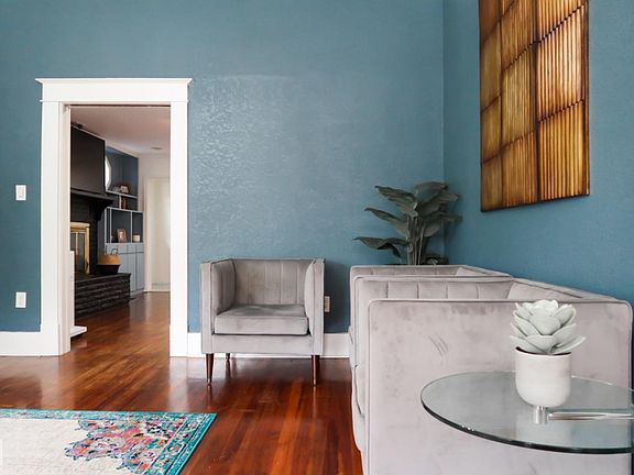 Welcome to your dream home in the heart of downtown! This stunning property offers the perfect blend of classic charm and modern upgrades. With three spacious bedrooms, two large living areas, a laundry room, a sunroom, and a dreamy front porch, this home has everything you need for comfortable living. The home boasts beautiful original hardwood flooring throughout, adding a touch of timeless elegance. The two bay garage provides ample space for all your hobbies, while the fenced-in private backyard features a covered patio area perfect for outdoor entertaining. Inside, you'll find a beautiful electric fireplace, upgraded plumbing, all-new interior and exterior paint, stunning custom built-ins, and ample storage space. This home is completely move-in ready, including a refrigerator, washer, dryer, and all window treatments. Don't miss out on this downtown charmer - it's the perfect mix of upgrades and original charm, ready for you to call it home!