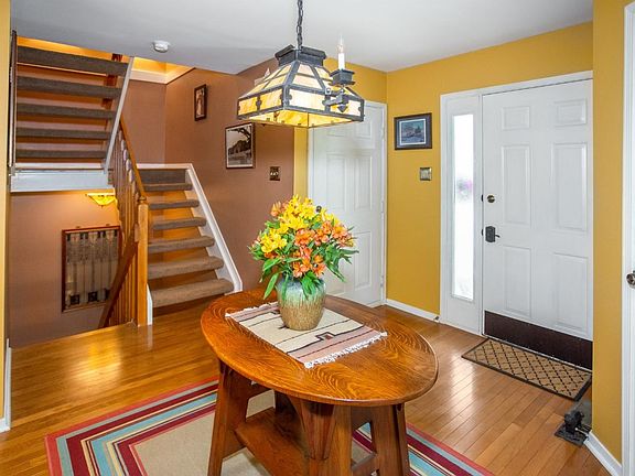 You will be impressed with this Open and Spacious town home in the very desirable Valley View Woods. The Large Foyer welcomes you with an inviting Front to back view of the Living Room, Plenty of natural sunlight, Recessed lighting and Gleaming Hardwood floors. The kitchen features a breakfast bar, work area, newer stainless appliances-LG Gas Oven, LG Refrigerator, Bosh dishwasher and Tile backsplash. The powder room is updated, with Shiplap and is located off the foyer. The second floor includes the Master Bedroom en suite with a jetted tub/shower, and large walk in closet, plus two Additional bedrooms with plenty of closet space, and the main bath. An Added Bonus is the basement with a F/R, laundry area, plus a storage room! the Rear Deck and patio offers privacy, backing to Trees.