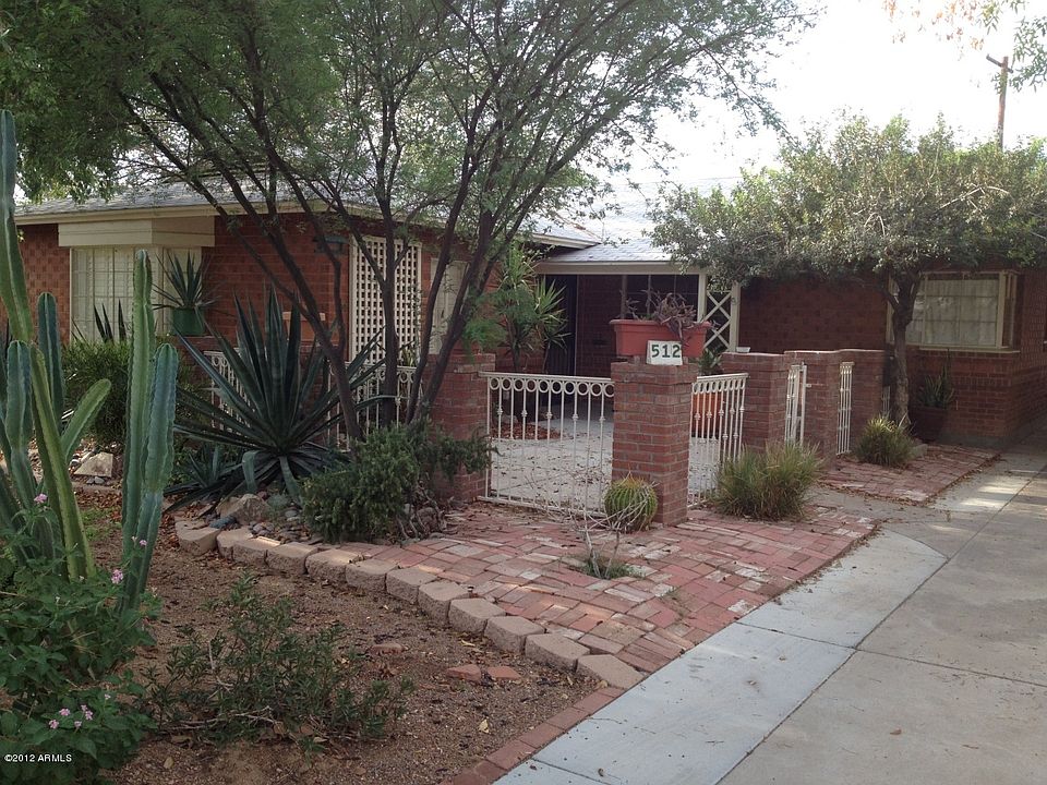 Mid Century red brick with finished concrete floor throughout. Almost 1700 sq.ft with spacious room sizes, sparkling pool and detached garage building that can be used for storage or workshop. Good curb appeal with front walled courtyard. Kitchen with granite and baths have been upgraded. Landlord request that the tenant have some pool maintenance and landscape experience or hire someone to maintain.