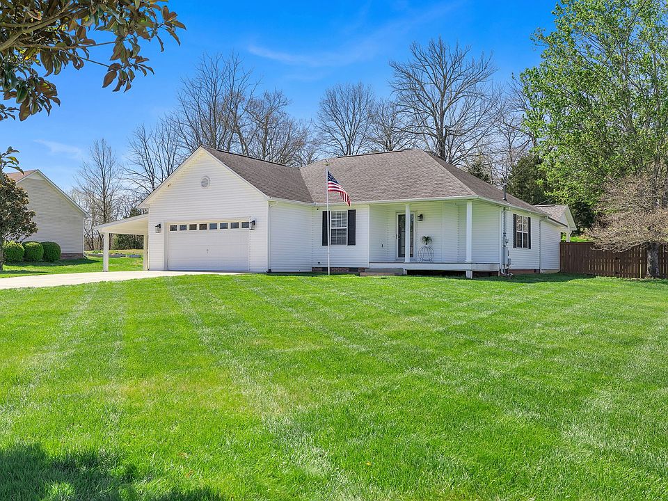 You need to see this place! One story ranch style home with all 3 bedrooms on main floor. Lovely tile and LVP throughout and gorgeous new quartz and backsplash in kitchen. A large covered living space with above ground pool complete this fantastic space on more than 1 acre lot. Plus, the 3 sheds and chicken coop stay! To top it off, the seller is offering a home warranty. The 12-acre lake in Oak Lake Estates offers great fishing as well as boating and kayaking for members of the HOA.