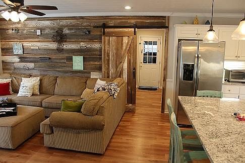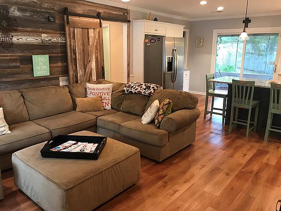 Make a BIG hit with family & friends when entertaining in this beautifully remodeled home. The Custom Rustic Reclaimed Wood Wall with Barn Door will be the center of the conversation. The kitchen is equipped with stainless steel appliances, granite countertops, subway tile back splash, under cabinet lights, island with seating for 4, and lots of cabinets for storage. Water proof vinyl wood flooring helps make this home less alleregens and easy clean up. Security Cameras Transfer. A MUST SEE!