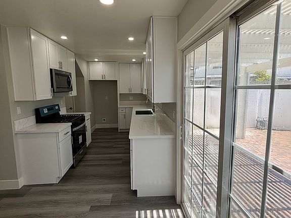Light and airy, cozy place to call home! Fully renovated with wood flooring, upgraded bathrooms, HVAC for a/c and heating, upgraded kitchen appliances, recessed lighting throughout, quartz countertops, washer and dryer in unit. Front patio and 2-car garage through a private rear patio. Owner pays sewer and garbage. Renter pays other utilities. No pets please.