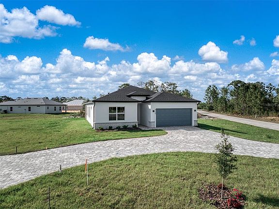 This exquisite 1,990-square-foot home showcases 4 bedrooms and 3 bathrooms; this residence sets a new standard of living. Step inside to experience premium finishes throughout. The heart of this home features a stunning chef's kitchen equipped with Samsung stainless steel appliances and a spacious center island, complemented by Calacatta Quartz countertops and subway tile backsplashes. Beautiful Reef Gold vinyl plank flooring flows seamlessly throughout - no carpet to maintain. Dramatic 9'4" ceilings create an airy atmosphere, enhanced by Maxim lighting fixtures and Moen Chateau Chrome accents. The primary bathroom features a frameless glass shower enclosure. The exterior impresses with Onyx Stone siding and an elegant circular paver driveway that provides both convenience and curb appeal. The property features a professional irrigation system and is set on an oversized private lot. Built for efficiency and peace of mind, this home includes an energy-efficient Goodman HVAC system, double-pane vinyl windows and doors, and a comprehensive 2-7-year builder warranty.The interior images shown are from a previously completed home of the same model and are for illustrative purposes only. Actual finishes, colors, and features in the completed home will vary.