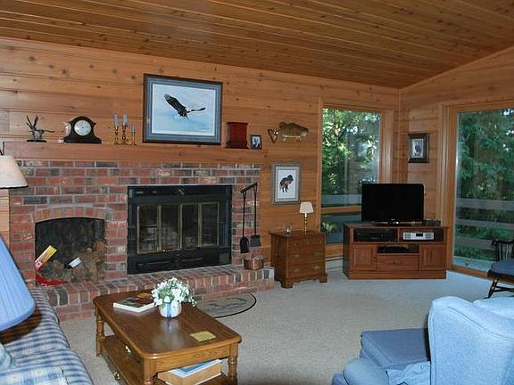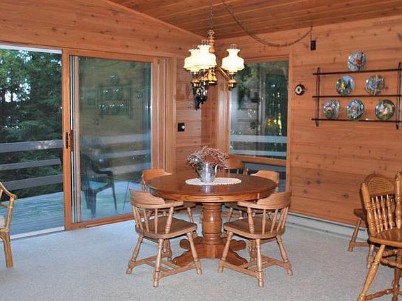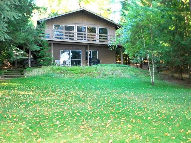 DAM LAKE OPEN CONCEPT RANCH - Ready for a new family! Anchored on 1+ acres with 120 ft. of sand frontage on a 5 lake chain is this 3 Bedroom/2.5 Bath home offering 2100+ square feet of living space. Main level Master Bedroom and Bath! Great Room opens to spacious wrap around deck! Lower level Family Room has a stove to warm chilly days and a Kitchen area for entertaining. Two more Bedrooms and 3/4 Bath! Two car detached garage plus a shed for marine storage. The Sugar Camp Chain of lakes is 75% state owned land boasting a natural and unspoiled shoreline. Dam Lake is the largest with 744 acres is all recreation.