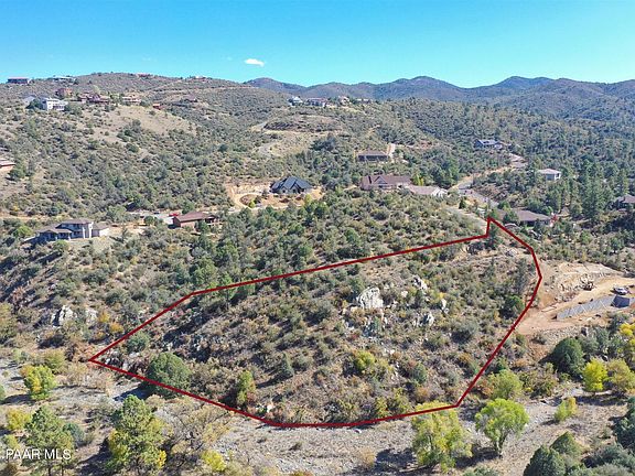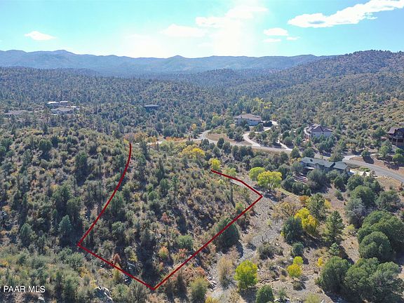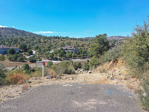 Large lot at the end of the road with panoramic views. Beautiful custom home neighborhood with no HOA surrounded by the Bradshaw Mountains. Natural landscape with the seasonal creek running below. Private water company and city sewer means no extra costs for a well or septic system. Location is perfectly situated between Prescott and Prescott Valley.