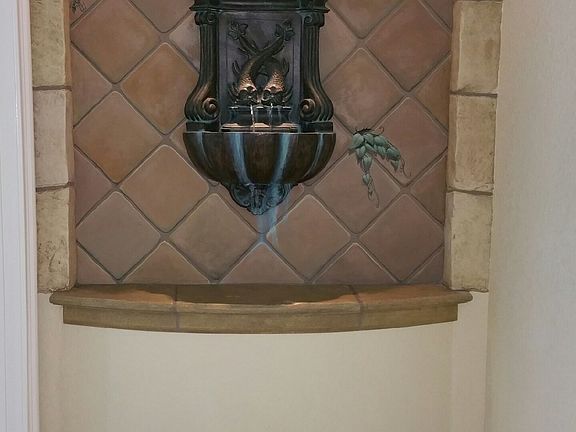 - Interior Features: Ceiling Fans(s), High Ceiling(s), Master Bedroom Downstairs, Crown Molding, Walk-In Closet(s), Open Floorplan, Solid Surface Counters, Solid Wood Cabinets, Eating Space In Kitchen, Kitchen/Family Room Combo, Built in Features, Stone Counters, Tray Ceiling(s), In Wall Pest System, Coffered Ceiling(s)