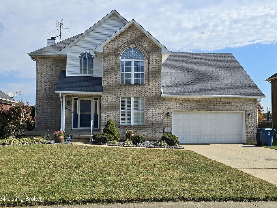 Lots of space in this brick 2 story in Hunters Pointe. 5 bedrooms, 3.5 baths. Huge bath in owners suite with large walk-in closet. Finished basement with 2 bedrooms, full bath and bonus room. Large 2 car garage. Deck overlooking yard with privacy fence.
