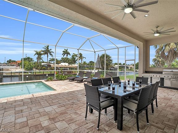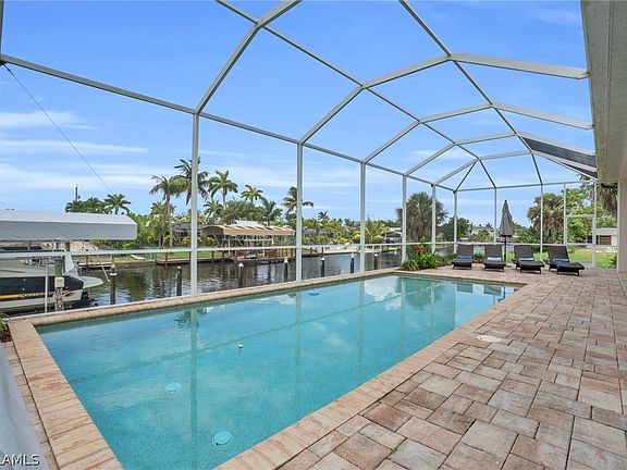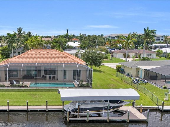 Step outside to a huge paved lanai with an outdoor kitchen, and a heated pool, the perfect relaxation and entertaining space. The property also includes a boat dock with a 10k lb lift and captain's walk. Furniture is negotiable. Makes it a Boaters Dream, with a beautiful Sunset for free. Invest in a second home to enjoy the Wintertime in sunny Florida. All assessments are paid! There was no Flood risk at this home during IAN.