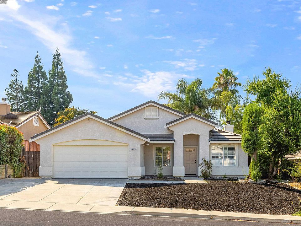 Rare SINGLE STORY! This beautiful 3 bedroom, 2 bath plus den home is ready for move in. The soaring ceilings in the living room, family room, kitchen and master bedroom bring in tons of light. Gorgeous kitchen with 20" tile flooring and custom inlay, fine maple cabinetry, and granite counter tops. Kitchen is open to the family room. Interior rooms and exterior trim freshly painted. Brand new carpet everywhere. Slider off kitchen leads to beautiful private outdoor living space including a freshly painted pool and cascading rock water fall plus an outdoor Tiki bar. Close to the new Antioch Bart station, schools and shopping. Could be a great investment property too!