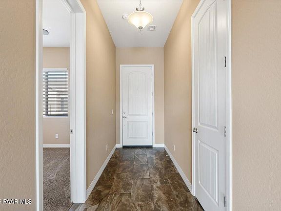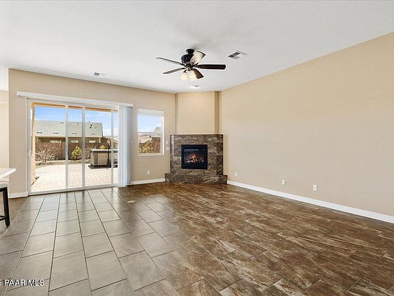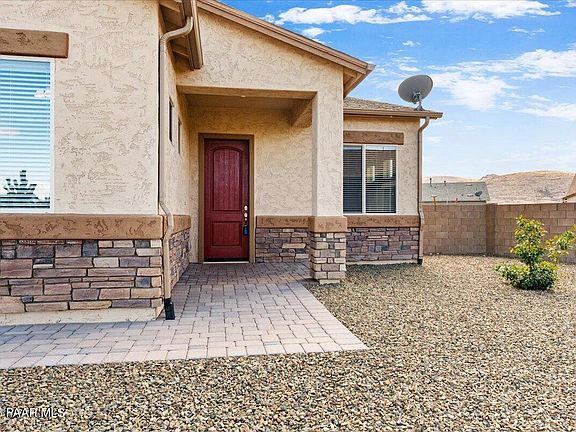 Welcome to this stunning 2022-built home in the highly sought-after Granville community in Prescott Valley, just minutes away from shopping, entertainment, and major medical facilities. This move-in-ready home offers 1,968 square feet of living space, featuring 4 bedrooms, 2 bathrooms, and a spacious 3-car tandem garage. Situated on a generous 0.31-acre cul-de-sac lot, you'll enjoy peaceful surroundings and views of Glassford Hill.With over $72,000 in upgrades, this home boasts a modern, open-concept floor plan perfect for everyday living and entertaining. The great room, which flows seamlessly into the kitchen and dining areas, is complemented by beautiful 12'' x 24'' stone-look tile flooring throughout most of the home, with plush carpeting in the bedrooms.