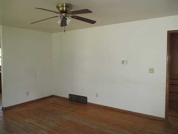 Three bedroom one bath ranch home with a finished basement. This home features hardwood floors, a covered front porch, a fenced back yard with storage shed and maintenance free vinyl siding.