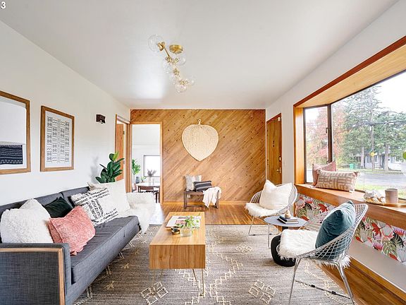 Hey cutie! This house really shines with the perfect combo of sweet original details and fabulous updates. Large windows bring in so much light and the wood details provide a lovely warmth. Sunken kitchen + dining has a wow factor with dramatic vaulted ceilings. Three beds and a gorgeous bathroom round out the house. Stylish lighting, hardwood floors, new roof/paint/mini split (HES score of 9!) make her a truly marvelous choice. Set on a large corner lot, with carport and permitted studio (perhaps a future ADU?) - it's a house with great flexibility. Make this home yours! A house this cute will not last long. [Home Energy Score = 9. HES Report at https://rpt.greenbuildingregistry.com/hes/OR10222766]