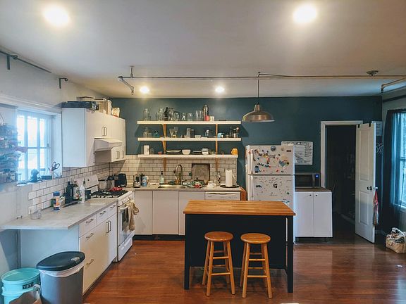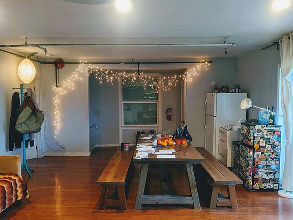 The house is the upstairs of a mixed use building. It features 7 bedrooms, 3 bathrooms (1 shared bathroom, and 2 ensuite). The kitchen/dining room has 2 refrigerators, a new dishwasher, ample shelves and storage. There is also a living room, bonus/reading room, and laundry room with new dryer & washing machine. There is a backyard with a small garden, a fire pit, and ample space for activity. Off-street parking available in the building's lot. Other building tenants include a non-profit coffee shop, music academy, yoga and massage practitioner, and therapist office. In the past, we've treated the space as an intentional community building house for people as they transition from college to career and/or early 20s, and we're open to starting that up again, but we'd need to have a core group of 3-4 would would be willing to start it, and then we can search for another 3-4 individuals who could fill it out. If you are interested in something like that, please include a little more description of your experience and/or desire for a community space with your inquiry. The building is a couple of blocks away from Reed College and down the block from a 10 bus stop. Many food options (great food carts!) in the area and Trader Joe's is less than a mile away. 12 month lease at $4950. First month rent and $4950 security deposit due at the start of the lease. Utilities are charged by the number of tenants to reflect consumption - average has been about $80/month per person. Parking available for tenants only in off-street building lot. Tenants are responsible for maintaining cleanliness in rooms and common areas in the rented space and taking out garbage for collection. Pets are allowed with an additional pet cleaning fee and pet damage deposit