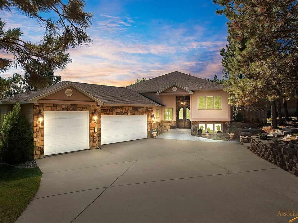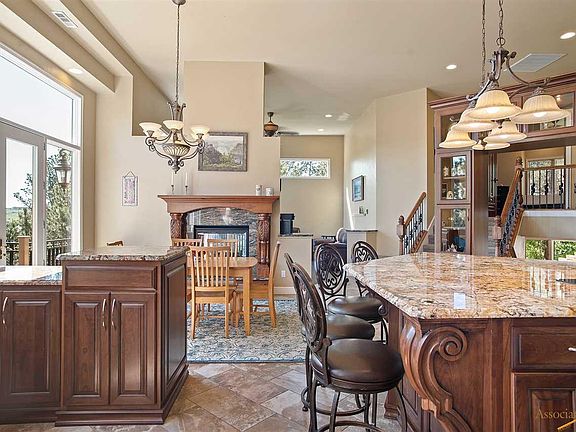 True luxury awaits you in this gorgeous home that sits atop a hill overlooking the city. Just off of Corral Drive, this home is within walking distance of great schools, but sits on a private and wooded lot. A grand entry greets you as you step into a dramatic main level with soaring ceilings, enormous windows, and an absolute dream kitchen that features custom cherry cabinetry, granite counters, and a huge center island that will wow your guests. A focal point to the main level is the double sided fireplace that sits between an elegant dining area and the living room. Both the living and dining rooms also have access to the amazing deck, which gives you sweeping views of the city. Escape to the master retreat which holds a spa-like bathroom with a jetted tub and dual-headed tile shower. Three additional bedrooms and bathrooms as well as two more family rooms, each with exterior access, finish off the interior of this must-see home!