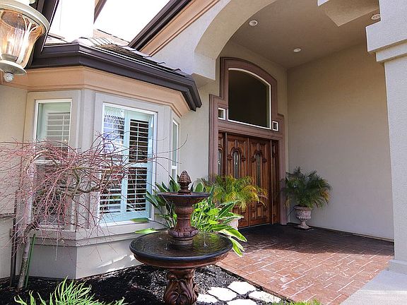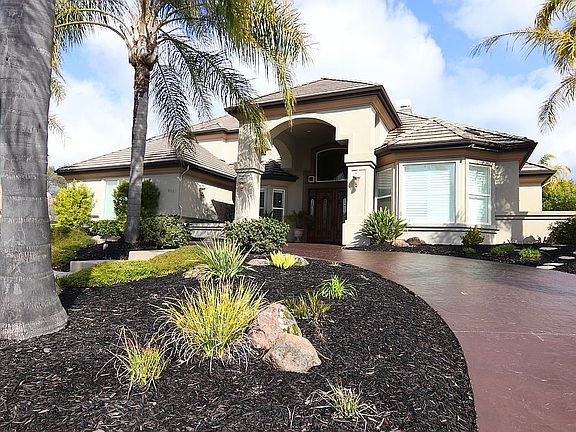 Nestled in the coveted community of Douglas Ranch is this 5300 sf elegant home perfect for entertaining. From the beautiful entrance with winding staircase, its vaulted ceilings and open floor plan, to the professionally landscaped grounds, this home must be seen to be appreciated. The huge kitchen boasts an expansive island, granite countertops, cherry cabinets, a Sub-Zero refrigerator and freezer, two stainless steel dishwashers, garbage compactor and disposal, built in microwave, and a stainless-steel gas cooktop with 6 burners and a griddle. There is an oversize pantry for plenty of storage. The kitchen opens up to the large family room with vaulted ceilings, complete with built-in media cabinet, surround sound, and gas fireplace. There are 5 bedrooms, 5 full baths and 2 half baths. Four of the bedrooms have their own private bathrooms and walk-in closets. The master bedroom has vaulted ceilings with recessed lighting, gas fireplace, and a large walk-in closet. The master bath has a jetted tub, double sinks, marble counter tops, cherry cabinets, a toilet and bidet, and a large shower with bench and multiple shower heads. The formal living room with fireplace opens up to a spacious back yard, heated swimming pool and spa, gorgeous landscaping, and plenty of space for entertaining. There is an outside bathroom for convenience. The landscaping was designed to be a low-maintenance yard complete with palm trees and easy-care plants. The winding staircase leads to the upstairs game room, a wet bar with granite counter tops, and a beverage refrigerator. Double doors lead out to the tiled balcony. Also upstairs is one bedroom and bath, an exercise room, and a room wired for theater. There is a large laundry room with a sink, and an adjacent mud room. The four-car garage has plenty of storage space and a textured floor.