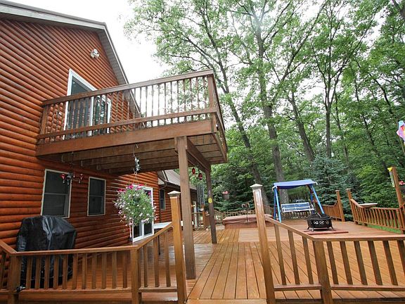 4 bed, 2.5 bath custom built, log sided with 6 stalls of garage space. Come home to a nature lover's paradise on 5.1 acres. From the moment you pull into the peaceful, secluded driveway,you feel the relaxation begin.This stunning 2,486 sq ft home feels like a mountain lodge, just one mile from Lake Michigan. Maintenance free, lifetime metal roof on house and all outbuildings. Home features spacious open floor plan 25.5 ft ceiling and a private getaway on second floor with separate living space,upper deck, large master en-suite. A dream home with majestic views in a picturesque wooded setting. Oak flooring and six panel solid oak doors. Plenty of room to entertain. 2 x 6 Construction. Basement fully insulated and toasty warm in the winter. Lovingly maintained by one owner.