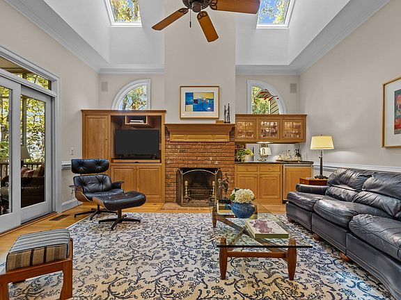 Welcome to 51202 Eastchurch, your perfectly sized custom home on a private lot in a lush setting in Governors Club. The lot is adjacent to common area along Eastchurch to Manly; there will never be another home to the right. Relish the natural light from abundant skylights and gorgeous windows that frame the changing seasons. Beautiful hardwood floors flow through the primary rooms on the main level. The fabulous screened porch, with glass doors from the family room and kitchen, is a focal point for leafy green views in the summer, gorgeous fall colors in the autumn and winter distance vistas. The family room features a wood-burning fireplace (gas starter) surrounded by custom casement built-ins. Create culinary specialties in the centrally-located kitchen, with maple cabinetry, granite counters, breakfast bar seating and a gas cook-top. The butlers pantry leads to the formal dining room with verdant western views. The first floor study is a haven for work or relaxing with a gas fireplace and stunning windows. A wall of built-in book cases and cabinetry await cherished photos and treasures. The primary bedroom is generous, located on the main level with a wall of windows and walk-out to a private deck, where the morning sun greets you. The ensuite bathroom has a significant walk-in shower, soaking tub and dual vanities. The walk-in closet features many organizational details. Three bedrooms and two full baths on the second level are perfect for visiting family and friends or additional office space. The large, fourth bedroom is ideal space for a media/bonus room. Significant walk-in attic storage is accessed through the closet. This warm and inviting home is located in the Saddle Ridge neighborhood, close to the main gate and minutes to the Clubhouse. Governors Club is a gated community that winds through Edwards Mountain and features a Jack Nicklaus Signature course with 27 holes over three fairways. Separate membership fees are required for golf, fitness and clubhouse dining.