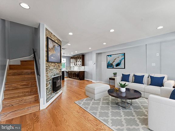 This updated Petworth townhome will instantly delight with its charming brick walkway and covered front porch. Its spacious and open floor plan provides for comfortable living and ease of entertaining. Enjoy oak hardwood floors throughout the main and upper level, a gas fireplace in the living room, and a kitchen with shaker cabinets, quartz countertops, and stainless steel appliances. A powder room is conveniently located on the first floor. The second level features three bedrooms and two bathrooms, including a primary bedroom with a wood feature wall and an ensuite bathroom with a glass-enclosed, walk-in shower. The lower level has an additional bedroom, bathroom, and a wet bar. Off-street parking for 2 cars in rear.