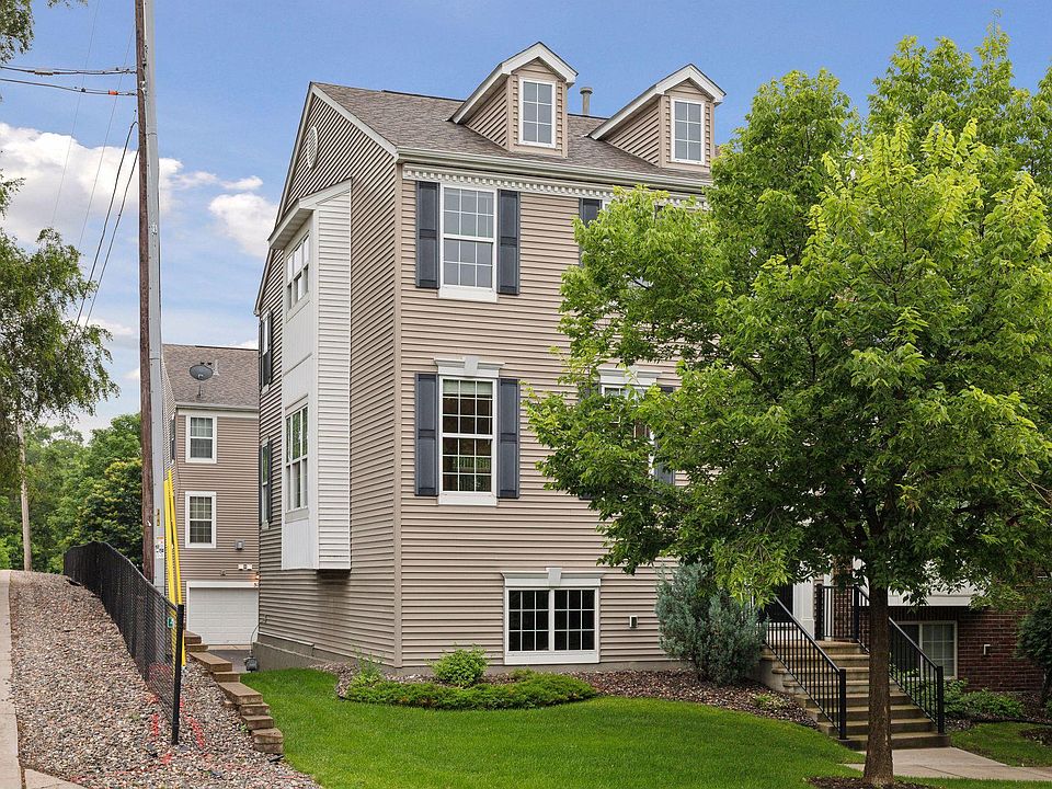 You will love this beautiful end unit, far east side of the complex ( furthest from Hwy 100). Nice private feel on the East side sitting high above the neighbor. 4 bedrooms 4 baths, 2 1/2 car garage. Front entry area w/ oak hardwood steps and hardwood floors on the main level. 9 foot ceilings on the main floor living room/dining room and kitchen. Large formal living room with great natural light with 5 windows. Formal dining room with gas fireplace. Kitchen with large center island, stainless appliances, granite counter tops, pantry closet, gas stove, under cabinet lights, sliding doors off kitchen to back deck. North, East, South facing unit. Upper level with large owners suite w/walk-in closet, owners suite bath with walk-in shower, large soaking tub, double vanity, another full bath & 2 other bedrooms. Lower level has 4th bedroom with tiled floor, tiled mud room, new 3/4 bath, laundry, attached garage, furnace 2021, water heater 2019, recessed lights, crown moldings, very clean
