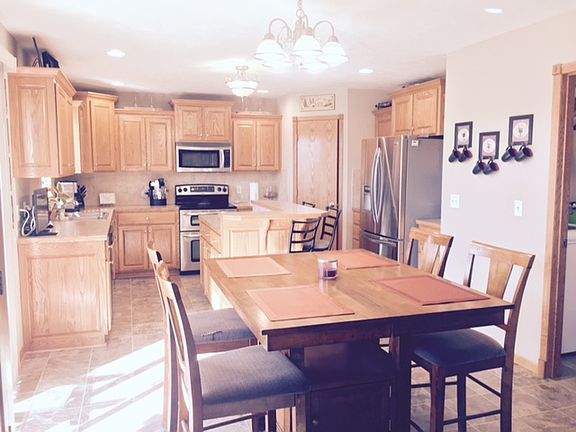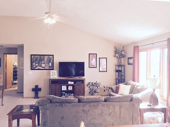 NEWER RANCH STYLE HOME WEST OF THE HOSPITAL, OPEN FLOOR PLAN WITH EATING BAR IN THE KITCHEN, PANTRY, STAINLESS STEEL APPLIANCES, UTILITY ROOM (WASHER/DRYER INCLUDED), PATIO DOORS TO PRIVATE BACK YARD - GREAT ROOM FEATURES VAULTED CEILINGS, MASTER SUITE W/WALK-IN CLOSET AND PRIVATE BATH - JACUZZI TUB AND DOUBLE SINKS. FULL FINISHED BASEMENT WITH FAMILY ROOM. 4TH BEDROOM, BATH, AND LOTS OF STORAGE. SOFTENER STAYS. STORM DOOR INSTALLED ON FRONT, WELCOMING FRONT PORCH AND OVERSIZED DOUBLE CAR GARAGE. HOA IS $90/MONTH INCLUDES SNOW REMOVAL, LAWN CARE & GARBAGE! HOME WARRANTY INCLUDED.