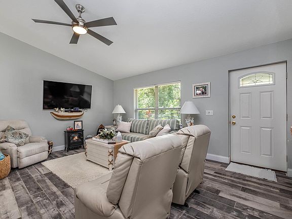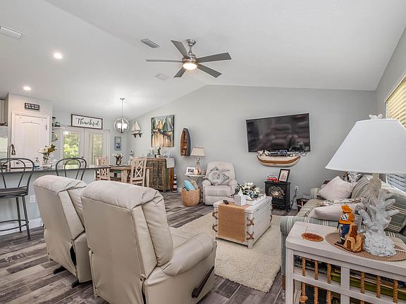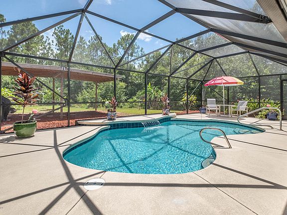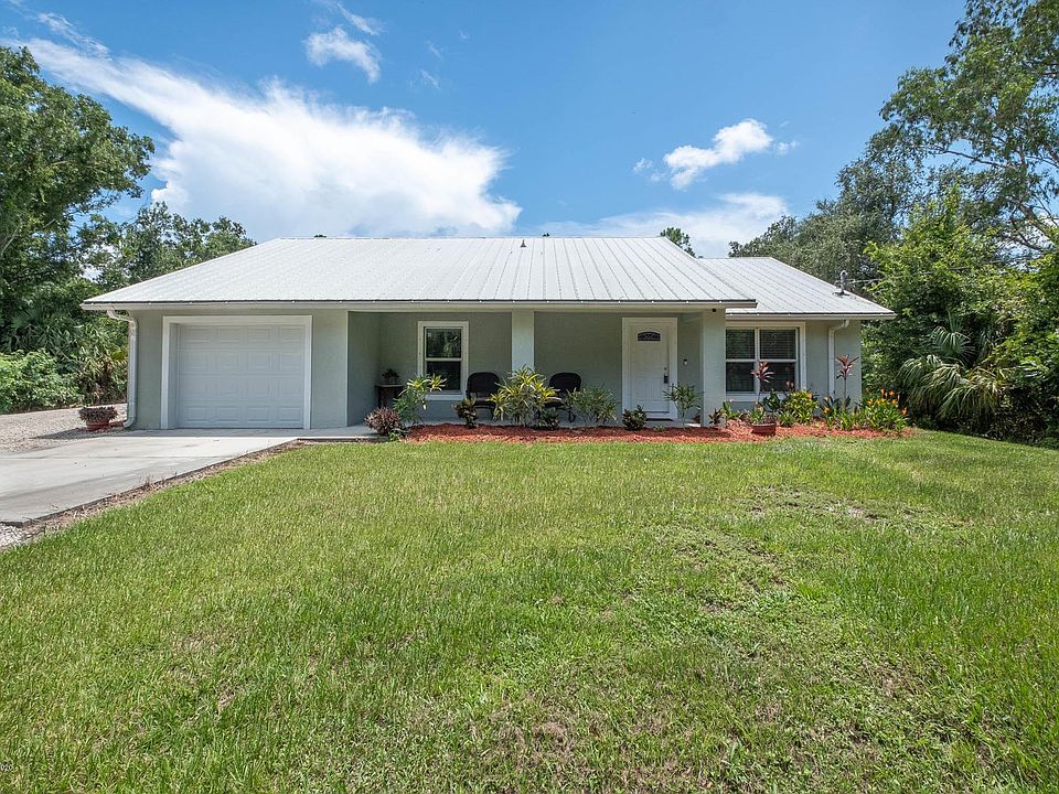 Here is your piece of paradise on 1 acre. Home built in 2017 w/ metal roof & salt water pool. Home has 2 beds/ 2 baths & beautiful indoor laundry & 1 garage. Plus there is a 20 x 40 shop - separate building. No HOA so can park your boat or RV or toys. You will love the wood look tile floors throughout. Kitchen has granite counters & stainless appliances. Nook area w/ desk.. Nothing to do but move in & enjoy your backyard screened pool - has solar panels too. There are banana, orange & grapefruit trees. A pergola out back where you can grill. Three flat screen mounted tv's convey as well as ring door bell & blink cameras.. You will love it!