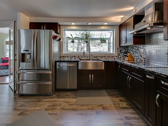 Beautifully updated split foyer located in the coveted Running Brook community of Columbia. Enjoy your own backyard oasis featuring a heated, in ground pool with waterfalls. Fantastic open concept floor plan offering luxury flooring, recessed lighting and a soothing neutral color palette throughout. The completely updated kitchen highlights stunning granite counters, an oversized island with breakfast bar, sleek stainless steel appliances and stunning modern mosaic glass and steel backsplash. Glass French doors invite you to the bright and airy sun room featuring Palladian windows and offers deck access. A soaring vaulted ceiling adorns the spacious master boasting a walk in closet and above additional storage. Luxury master bath boasts a striking vertical mosaic tile accent wall behind the freestanding soaking tub, a frameless shower and dual vanity. Two bedrooms and a full bath complete the main level living quarters. The opulent lower level offers a family room highlighting a floor to ceiling brick fireplace, a den, bedroom, full bath, and a laundry room with access to the back yard and the finished garage. Updates include: HVAC, hot water heater, pool, Baths, lighting, built-in speakers, carpet, window, garage and much more!!