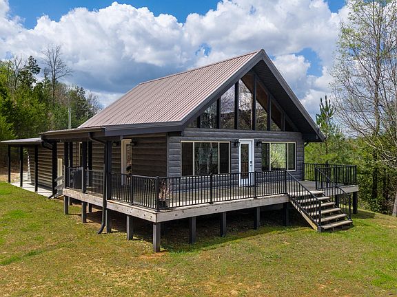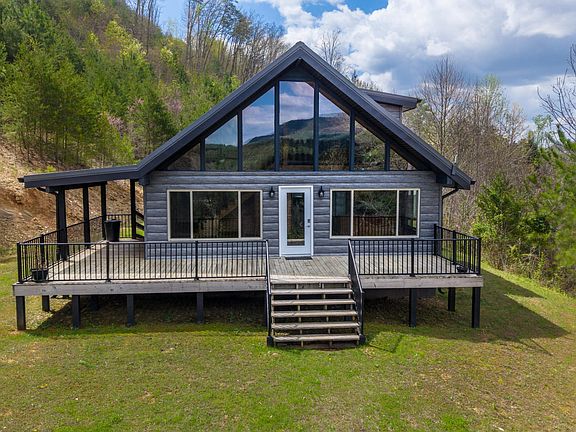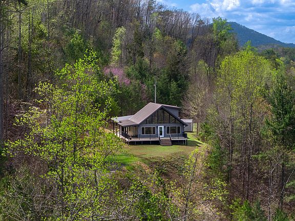 Welcome to your private mountain retreat! Nestled on 36.48 acres, this exceptional property offers endless possibilities whether you're seeking peace and privacy, income-producing rentals, or a multi-home family estate, this unique property delivers. Featuring two charming homes, each offering breathtaking panoramic mountain views. A gated entrance welcomes you into this serene retreat, complete with a flowing creek, tranquil pond, and expansive front and side porches ideal for relaxing or entertaining. The first home, a 1,637 sq ft rustic gem with classic wood siding, features 3 bedrooms and 2 beautifully updated bathrooms. The spacious kitchen boasts stunning cabinetry and opens to a great room with vaulted ceilings, large windows, and stunning views. A large laundry room adds convenience and functionality. The second home offers 2,122 sq ft of living space with low-maintenance TruLog steel siding and a new HVAC system (both in 2022). Inside, you'll find 2 bedrooms, 2.5 bathrooms, an expansive 30' x 15' den with sliding doors to the side porch, a vaulted-ceiling great room with panoramic views, an updated first-floor bathroom, a large laundry room, pantry, and an attached 1.5 car garage. A roughed-in road leads to the top of the property with cleared acreage, where you'll be rewarded with breathtaking, long-range mountain views in every direction. Imagine waking up each day to stunning sunrises and ending your evenings with unforgettable sunsets all from your existing home or future dream home perched high above it all. This land is unrestricted, meaning no HOA or zoning limitations, giving you the freedom to build multiple homes, cabins, or even develop a small vacation rental community. Live in one home and rent out the other—or take advantage of the thriving short-term rental market with Airbnb potential. Don't miss the opportunity to own this one-of-a-kind mountain retreat with the space and freedom to bring your vision to life!