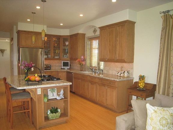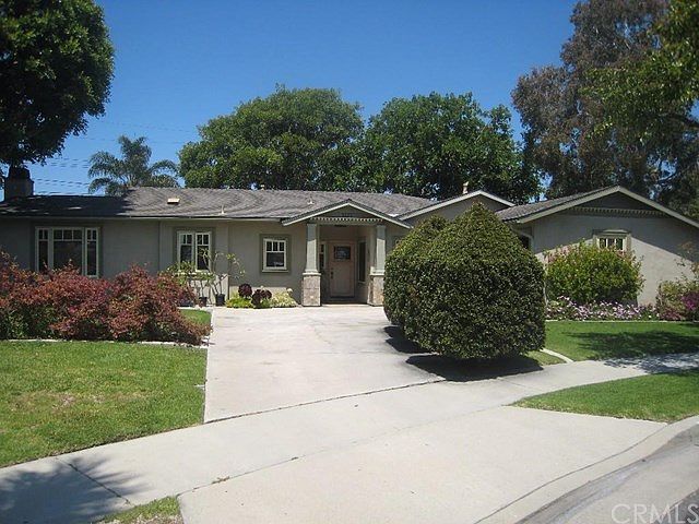 This is the property you have been waiting for:a beautiful house with a private park-like yard. Lot size is over 12,000 sq ft: twice the size of the usual HB lot, & beautifully landscaped with stunning garden views from all points in the rear of the house. The original house was 1275 sq ft; the owner added on a gorgeous kitchen and family rm w fireplace (550 sq ft addition), w/ 9 ft ceilings for a contemporary feel. From front entryway-where custom designed slate pillars guard the front door-to the open designer kitchen, you will want to stay here forever. The kitchen has a walk-in pantry, beautiful maple cupboards, pull out drawers for pots and pans, a corner lazy susan, some glass doored cabinets, an island range with built in grill, and the oven, microwave and warming drawer are all built in. Windows are double paned (except bathrooms 1 LR); electrical has been updated; some dimmers. A separate interior laundry room with a deep sink is both convenient yet out of the way. A pull-down attic access in the hall makes for easily accessed storage. Located in a short interior cul-de-sac, with mature trees, landscaping, & good drainage. This is one of the most beautiful yards in Huntington Beach.