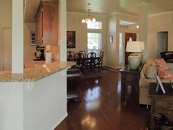 Huge cul de sac lot! Steps away from walking trails, neighborhood lake, and park. One owner. Well maintained. Wood floors. New carpet in bedrooms. Open layout. Granite counters. Storm shelter. Double pane windows. Mature landscaping in front and back. Sprinkler system. 15 minutes from campus!