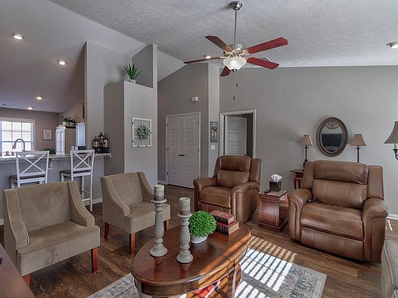 Nestled in a quiet neighborhood on Evansville’s east side, this beautifully maintained and ADA compliant three bedroom, two bathroom home offers a perfect blend of comfort and convenience. Vaulted ceilings and large windows fill the home with natural light, enhancing the open and airy feel throughout the living room and kitchen. The eat-in kitchen is equipped with stainless steel appliances, and the main floor laundry room adds to the home's practicality. This home features a spacious primary suite with a walk-in closet and en-suite bathroom, while two additional bedrooms share a second full bath. This energy-efficient home features a tankless water heater and an insulated garage door, ensuring the attached two-car garage remains efficient throughout the year. Outside, an open deck provides an ideal space for relaxation or entertaining.
