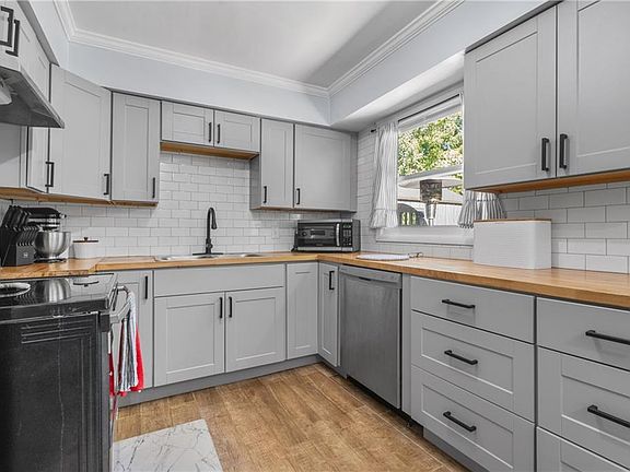 Welcome to this beautifully maintained Ranch home, where charm meets updates! With a new roof, a recently installed sump pump, and newer interior paint, this home is truly move-in ready. The added insulation in 2023 enhances energy efficiency, ensuring comfort year-round. Step into the stunning kitchen, featuring stylish painted cabinets, butcher block countertops, a subway tile backsplash, and stainless steel appliances. The cozy living room boasts an updated ceiling fan and gleaming hardwood floors, creating a warm and inviting atmosphere. Enjoy evenings on the patio in the backyard or around the firepit area! The landscaping has been updated with two trees removed, a new French drain and a new retaining wall. This home has been lovingly cared for, leaving you with nothing to do but unpack and enjoy. Schedule your showing today!