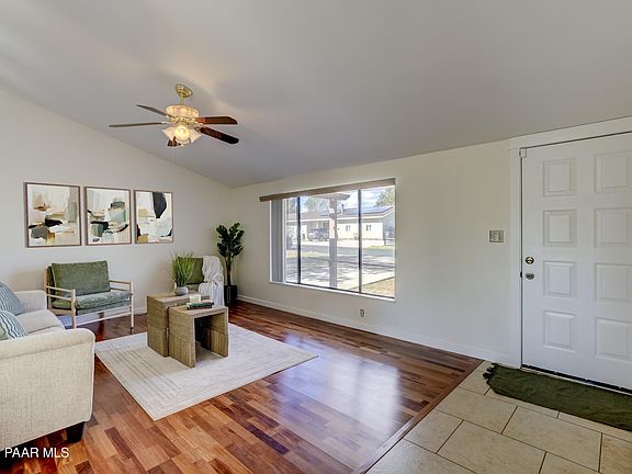 Rare 4 bedroom 3 bath! with 4th bedroom having separate bath and outside access perfect for an extra family member. 4h bedroom/den has it's own Mini split in 2025, the main house is 1,200 sq. ft. on it's own HVAC. Master bath remodeled with tile walk in shower. no carpet great for pets. This house has been recently painted has a newer roof 2015, a newer HVAC system in 2016. Move in ready and a large lot 0.24 acres with RV parking possible no HOA. Also city of prescott valley now allows up to 6 chickens great for your own fresh eggs. (no roosters)