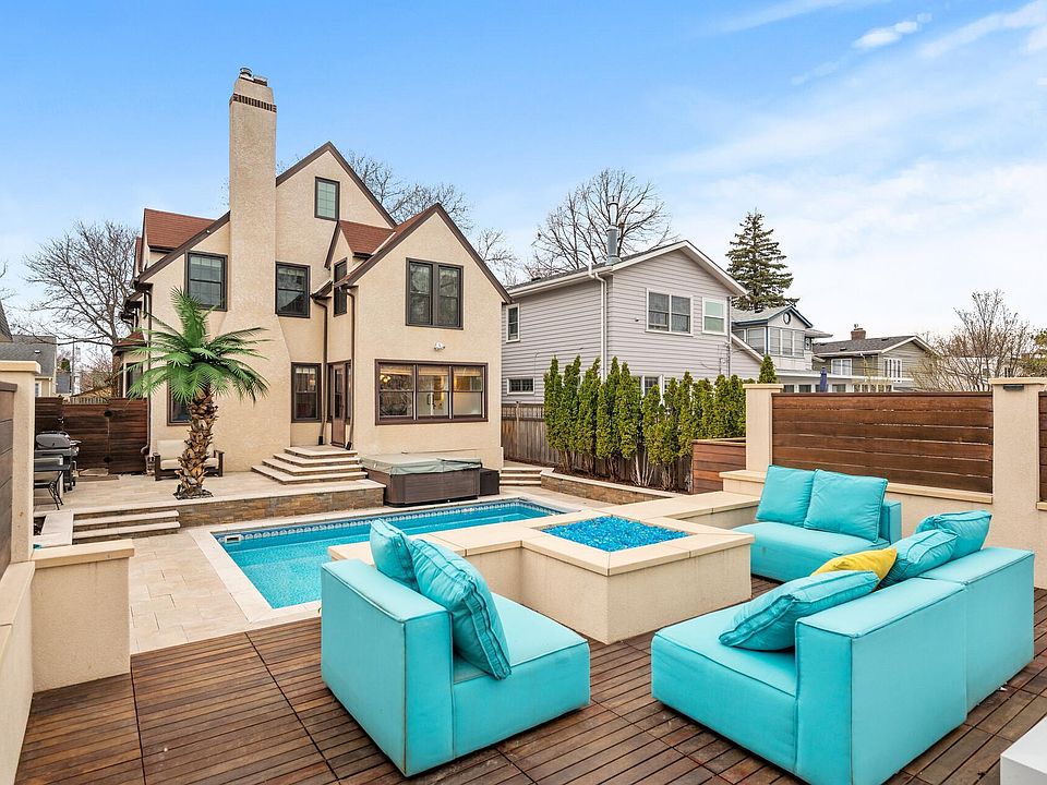 Your own private oasis in the Lynnhurst neighborhood! This classic Tudor style home is nestled on a quiet street just a half block from the creek and a few blocks from Lake Harriet. The backyard features a heated pool, hot tub, natural gas firepit, and gas hookup for a grill. Enclosed by privacy fence, an extensive travertine patio with hardwired lighting and an Ipe Brazilian wood elevated deck complete this sanctuary. The home has been updated with today's standards in mind. In the last two years a first floor half bath was added along with a bar featuring ice maker and beverage fridge. The basement has also recently been finished; adding a bedroom, 3/4 bath, and exercise room. New boiler, water heater, radiators w/ heat zones added as part of this project. New Pella windows installed on second and third floors. Too many updates to mention, see supplements for list. Third floor bedroom makes a perfect office, basement bedroom currently used as living room.