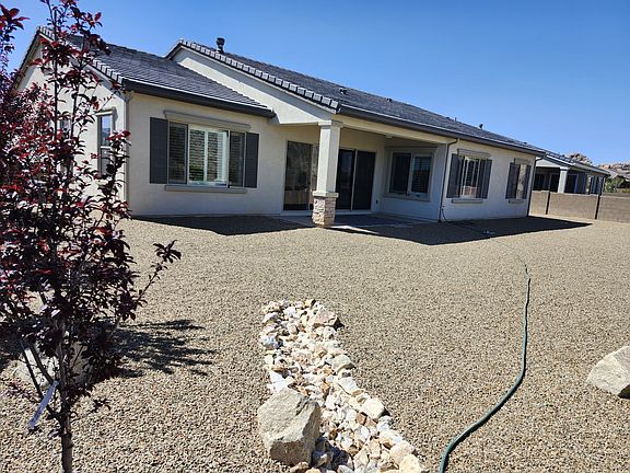Walden Ranch is a beautiful community. This gorgeous home has stunning views of the Granite Dells. The interior of this home has vaulted high beamed ceilings, Plantation style shutters, 16-foot wall of windows. surround sound speakers, under cabinet lighting, stacked stone gas fireplace, upgraded leather finished Granite countertops, and custom ceiling fans. The 3-car garage has epoxy flooring, sink, and a workstation with shelves. The community has 2 Pickle ball courts and basketball court, Bocci ball courts, dog areas with water, children play area, BBQ's, firepits and a large event area with fireplace and picnic tables throughout.
