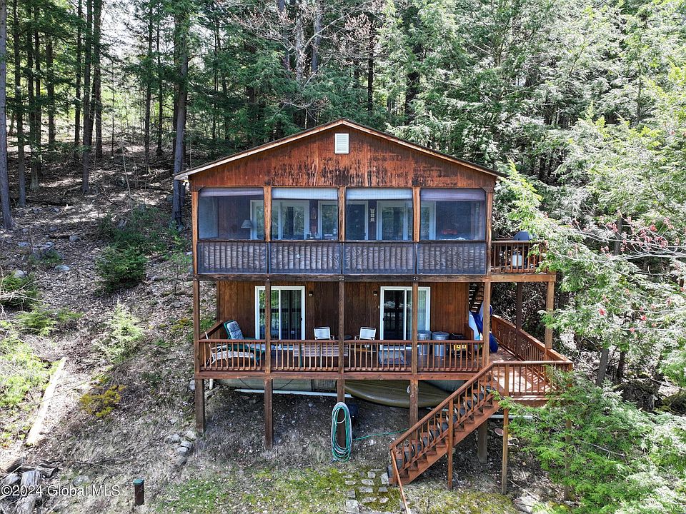 Offered for sale for the first time ever, this property is a rare opportunity to have both acreage and lakefront. Nestled among the pines on the shores of protected Dark Bay on Lake George, sits this 3 br home built in 1997. Unlike many others, this property has easily accessible lake frontage with 65' of sandy beach perfect for swimming and a dock. Love the woods? Get up in the morning and take a hike on the 17 acres that adjoins Sucker Brook Preserve for additional hiking opportunities. After a day on the lake, have dinner on the screened porch overlooking the water. There is a large gazebo for additional outdoor living space. This is truly a one of a kind property with endless possibilities that is sure to capture your heart!