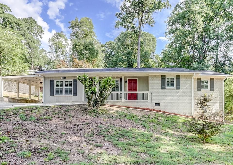 Updated four-sided brick ranch with hardwood flooring and open floor plan. Bright kitchen with stainless appliances, recessed lighting, granite counters, breakfast area, gas cooking, stained cabinets, and built-in microwave. Large living areas or use as living and dining. Spacious master bedroom with private bathroom features double-vanity, lots of lighting, and spacious shower. Big secondary bedrooms. Spacious basement with boat door. Large level, wooded backyard with deck and patio. Great location to South Cobb Dr. and 285.... just a few minutes away.