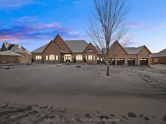 Welcome to an extraordinary custom estate in the heart of Claremont-one of Pickering's most exclusive and tightly held communities. Set on a private lot just under 1 acre at the end of a prestigious court, this 7,956 SF residence offers unmatched scale, privacy, and refined living. Nearly $450,000 in recent renovations elevate the property, including a newly constructed crescent driveway accommodating up to 20 vehicles, an oversized 4-car garage with upgraded doors, professional landscaping, and two tiers of custom decks with glass railings and privacy screening overlooking the expansive grounds.Inside, timeless architecture is paired with modern luxury. The main level showcases wainscoting, custom millwork, and an executive office with hand-built shelving. An oversized chef's kitchen anchors the home with extensive cabinetry and prep space, seamlessly connecting to the family and dining rooms through a dramatic double-sided stone gas fireplace. Four generous bedroom suites-each with its own private ensuite-provide exceptional comfort, while the primary suite offers a grand retreat with a luxurious 7-piece spa bath and extensive closet space.The lower level redefines expectations, offering over 4,000 SF of bright, above-grade-feeling space with high ceilings, wall-to-wall windows, and large bedroom suites ideal for extended family or multi-generational living. An additional unfinished area of nearly 1,000 SF allows endless possibilities for a future suite, gym, studio, or workshop.Located in a tight-knit, family-friendly enclave surrounded by scenic trails, parks, and everyday amenities, and minutes to Old Elm GO and Hwy 407, this estate delivers exceptional craftsmanship, space, and lifestyle in one of Durham Region's most coveted neighbourhoods.