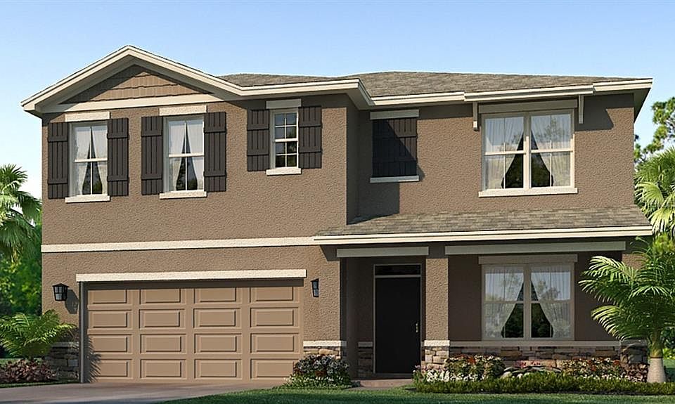 Under Construction. This two-story, all concrete block constructed home has a large open concept kitchen overlooking the great room and dining area that leads to a covered lanai. The first floor also provides a flex room upon entering the home, as well as a spacious guest bedroom and full bathroom. Upstairs there is a large bonus room, great for work or for play, as well as the Bedroom 1 with Bathroom 1, three additional bedrooms, a third full bathroom, and a well-appointed laundry room. This home comes with installed stainless-steel dishwasher, electric range, and microwave. Pictures, photographs, colors, features, and sizes are for illustration purposes only and will vary from the homes as built. Home and community information including pricing, included features, terms, availability, and amenities are subject to change and prior sale at any time without notice or obligation.