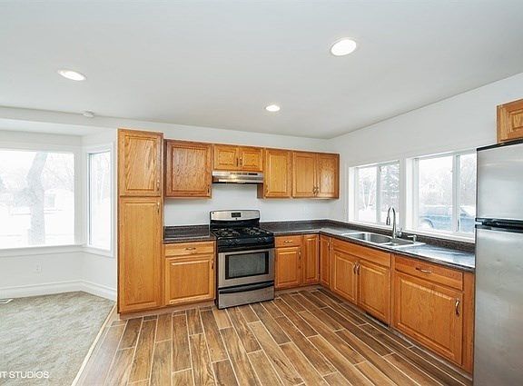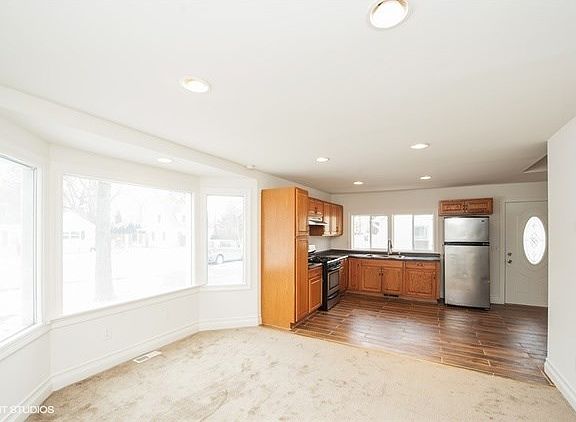 This bungalow has new carpet and is freshly painted. This home features an open floor plan with newer cabinets and flooring. Kitchen is open to the living room that features recessed lighting. Master suite has vaulted ceilings and a private bath with dual sinks. There are 2 additional bedrooms on the 2nd floor . This home has a long driveway and a 2 car garage. New furnace and a/c in 2012