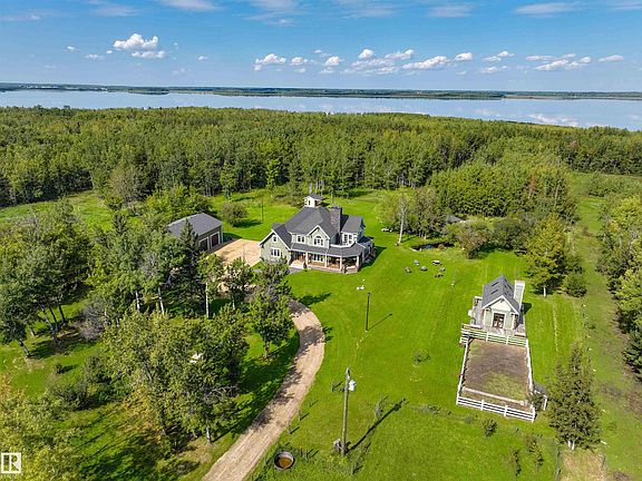 DREAM PROPERTY!! This exquisite 2 storey custom-built estate is situated on 13.69 ACRES on the shores of Cooking Lake! Nestled in nature & perfect for horse lovers or those looking the best of recreational living. Offering 3000 square feet of luxury living space plus a FULLY FINISHED WALKOUT BASEMENT! High quality finishings & tons of natural light throughout. Large living room with fireplace, dining area, bamboo floors & GORGEOUS GOURMET KITCHEN! Total of 4 bedrooms & 4 bathrooms. Primary Bedroom with LUXURIOUS ENSUITE, walk-in dressing room & private patio. Beautiful basement with living room, kitchen, 4th bedroom, bathroom & laundry area. The amazing recreational outdoor spaces include a covered deck, studio, 5 lamp posts, pretty bridge & beautifully landscaped yard. MASSIVE SHOP and a huge carport for your extra toys! Only 15 minutes from the Anthony Henday & 20 minutes from SHPK! Surrounded by wildlife & beautiful trails. There is so much to enjoy that you will never want to leave this place!