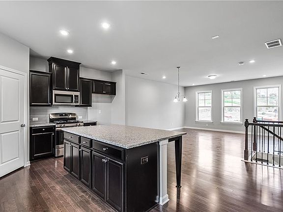 - Kitchen Features: Breakfast Bar, Eat-in Kitchen, View to Family Room, Stone Counters, Kitchen Island, Pantry Walk-In, Solid Surface Counters