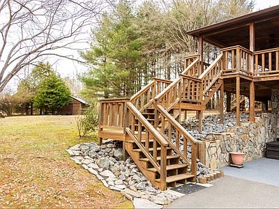 Country living at its finest !! this gorgeous log cabin features 4 bedrooms, 3 full bathrooms and includes a full mother-in-law suite with full kitchen in walkout basement. Main level features kitchen, huge family room, 2 large bedrooms and a full bath, upper level features extra large owners suite, full bath plus a spacious loft. Walk out basement features 2nd kitchen, large bedroom, living room and full bath. Outside features gorgeous wrap around porch, a barn and a storage shed all nestled on almost 4 private acres!!.
