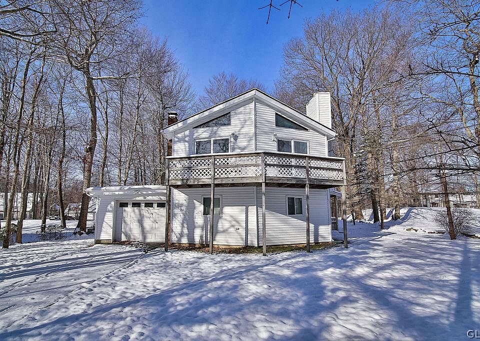 THIS HOME HAS IT ALL! AND MORE!!! Ample room for FRIENDS FAMILY or GUESTS! The first floor offers 2 bedrooms, full Jacuzzi bath tub & laundry space. Create memories in the open concept living/dining combo with propane oven kitchenette, wood stove and propane heater! The upstairs is sure to impress with bamboo flooring throughout leading to a second open concept vaulted ceiling kitchen with living room/dining room combo! Cozy up in front of the wood fireplace or enjoy the fresh mountain air on the front deck. Completing the second floor are 3 bedrooms and full bath. The built-in garage offers extra storage. Two paved driveways provide ample parking. Poconos Resorts and Shopping minutes away! NY/NJ Commuters paradise! Community clubhouse available for private event! Schedule a showing today!