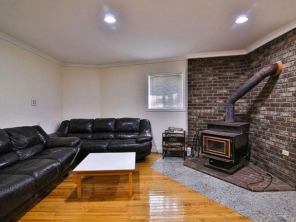 - Description: Hardwood flooring, Crown molding, Wood stove
