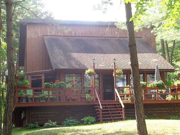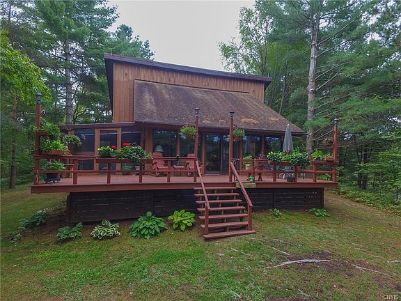Blueberry Point, LAKE OF THE PINES - 3 bedroom 2 bath year round contemporary style home in excellent condition. Quiet, Pristine location on a non-motorized Adirondack lake. Consists of about 1.7 acres with about 250' of lake frontage. Located close to the golf course and restaurants. Other special features include a nicely remodeled kitchen (includes all appliances), a newer addition consisting or an office/laundry, a screened-in porch with hot tub, a newer 28' X 40' detached garage, full deck overlooking the lake, a lake side deck, dock and raft. Has a full house on demand propane generator and more. Property located on snowmobile and ATV trails. Great four season recreation area. This is a must see NOW!