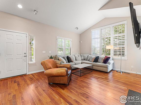 Don't miss this rare end-unit townhome in Broomfield! With two primary suites, two additional bedrooms and four total bathrooms, this home has it all. Enjoy plenty of natural light with south-facing windows and vaulted ceilings. Incredible upgrades throughout the home include cherry floors, plantation shutters, and a gourmet kitchen with stainless steel, quartz counters, cherry cabinets, and a spacious island. You'll love the location with Broadlands West Park right across the street. Welcome home!