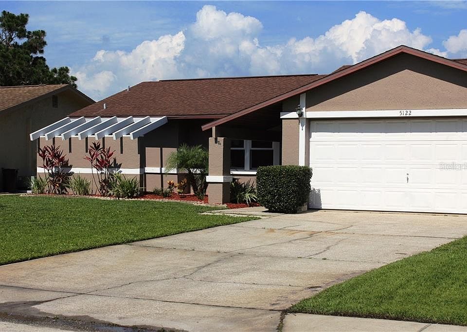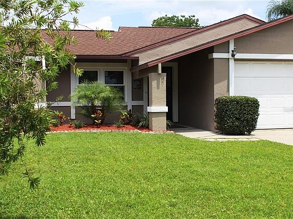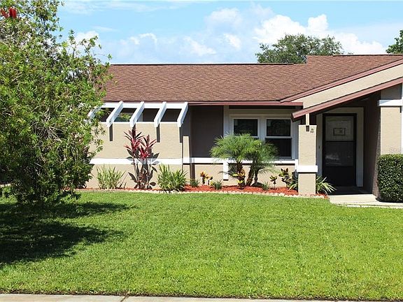 OPPORTUNITY KNOCKS! Ranch home consists of 2 bedrooms / 2 full baths / 2 car garage w/1100 square feet of living space! Courtyard welcomes you inside! Tile entry invites you to look up at the cathedral ceiling and over the living and dining room combination which flows to the kitchen overlooking a light and bright breakfast nook with sliding glass doors accessing covered lanai for grill and outside entertaining! Fenced backyard w/shed for storage! Kitchen reveals 3 door fridge, smooth top range, dishwasher and built-in microwave including solid surface countertops, undermount sink and tile flooring! Nearby closet pantry and hall closet! Popular split-bedroom plan with bedrooms on opposite sides of the home! Privacy for guests and you! Master bedroom suite embraces his and her closets, double sinks- updated in past few years along with shower tile newer tile flooring in bath area! Second bedroom is a good size with nearby guest bath containing a tub/shower combo! Several windows have been upgraded. A/C has a humidistat. 2 car garage sports washer & dryer hook ups, workshop bench, automatic garage door opener and a double driveway. NO flood insurance required! NO HOA fees required! Have a dog? Around the corner from this home is Meadows Dog Park - an off-leash park that includes a basketball court and playground! Discover shopping, restaurants and parks in the surrounding areas along with quaint downtown New Port Richey! Great home for year-round residents or snowbirds!