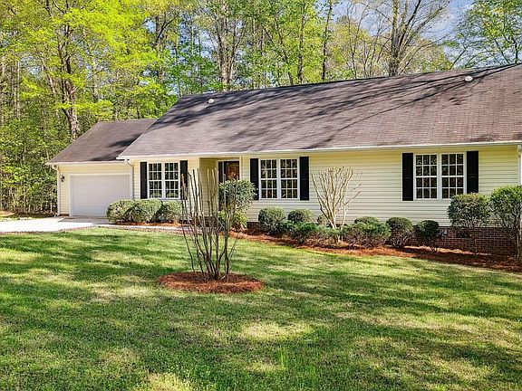 Welcome to a great home bursting with potential on a DOUBLE LOT, on a cul-de-sac in the sought-after Carolina Trace community! This charming 3-bedroom, 2-bath, property offers a fantastic opportunity for those looking to bring their vision to life. Step inside to find a spacious living room with vaulted ceilings, a cozy fireplace, and large windows that flood the space with natural light. The kitchen, complete with a breakfast nook and generous pantry, opens to a formal dining room featuring a built-in china cabinet—perfect for gatherings and celebrations.