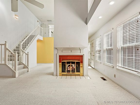 Welcome to this rare townhouse with 2 split bedrooms, 2 full bathrooms and attached 2 car garage in the heart of Tulsa. Light and bright with lots of windows and vaulted ceilings, this home truly lives large. As you enter the front door you are greeted by an open family room with vaulted ceilings, flooded with natural light and a gas log fireplace. It has both a dining room and a breakfast room as well as indoor hookups for the washing machine and clothes dryer. Appreciate the exclusivity of only 7 townhomes in this community and not sharing any walls with your neighbors. The private side patio is fully enclosed to enjoy your morning coffee or evening barbeque. Located in highly rated Carnegie Elementary school district makes this property even more valuable. HOA mows the lawns, removes the leaves and snow and ice. Come experience this low maintenance life style and the freedom it gives you! Close to shopping, dining, expressways and downtown Tulsa. Make this unique home your own.